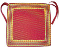 カバーの取り外しが可能なのが嬉しい、デラックス版チェアクッションです。従来のシートクッションよりも厚みがあり、大きめなのが特徴。上部両側に付いている2本のヒモで、イスに固定します。クッション取り出し口は、一辺にジッパーが取り付けられており、そこから出し入れするようになっています。 |