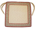 チェアークッションデラックス・シートクッション(商品番号 カバーの取り外しが可能なのが嬉しい、デラックス版チェアクッションです。従来のシートクッションよりも厚みがあり、大きめなのが特徴。上部両側に付いている2本のヒモで、イスに固定します。クッション取り出し口は、一辺にジッパーが取り付けられており、そこから出し入れするようになっています。