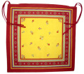 チェアークッション・シートクッションカバー(商品番号 「リュベロン」コレクションにチェアー用クッションカバーが加わりました。こちらは2種類の布を組み合わせて縫い合わせたカドレ(フレーム)仕上げではなく、フレーム状にプリントされた1枚布を表裏で縫い合わせたシンプルな作りです。マチなし。上部両側に付いている2本のヒモで、イスに固定します。クッション取り出し口は、一辺にジッパーが取り付けられており、そこから出し入れ可能です。 |