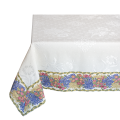 ローズ、ラベンダー、小麦などがプリントされたテーブルクロス。