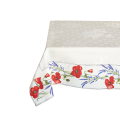 プロバンスジャガードマルチカバー(商品番号 小ぶりのひまわりや、いかにもフランスらしい抽象柄が立体的に織り込められた厚手生地の周囲に、プロヴァンスプリント生地でフレームが組まれているという豪華な作り。これだけデザイン性と品質が高いものは本当に珍しいです。写真だと分かりづらいですが、よく見ると全面に浮き模様があるのが分かります。ソファーカバー、ベッドカバー、テーブルクロスにと用途はいろいろ。
