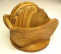 オリーブウッドのコースターセット(商品番号 オリーブ木製パニエ(かご)に入ったコースター5枚セット。卓上にそのまま置いておけば、さっと取り出せインテリア小物として存在感のあるアイテムに。コースターは全面フラットです。