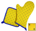 プロバンス鍋つかみセット(商品番号 お得なセット価格でのご提供です♪正方形の方は、なべしきとしても利用でき、ボーダー状にモチーフが並んでいるリネエールとオールオーバータイプ生地のリバーシブルになっています。