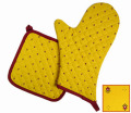 プロバンス鍋つかみセット(商品番号 お得なセット価格でのご提供です♪正方形の方は、なべしきとしても利用でき、ボーダー状にモチーフが並んでいるリネエールとオールオーバータイプ生地のリバーシブルになっています。