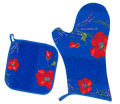 | プロバンス鍋つかみセット(商品番号 お得なセット価格でのご提供です♪正方形の方は、なべしきとしても利用でき、ボーダー状にモチーフが並んでいるリネエールとオールオーバータイプ生地のリバーシブルになっています。 |