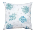 2023年新商品。海がテーマのサンゴ礁、タツノオトシゴ、貝殻がプリントされた夏らしいクッションカバー。