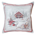 山間の景色をイメージした、ログハウス、エーデルワイス、そり、雪の結晶などが織り込まれたコレクション。見本画像のように、裏表を変えて並べてみても素敵です。 クッションの入り口は、ジッパーでの開閉。