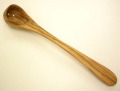 オリーブの木の穴あきレードルPM25cm(商品番号 液体に浸かっている食材をすくい出すための3つ穴のあいたレードル。元は瓶に入った塩漬けオリーブ用のレードルです。そのため全体的に丸みを帯びた形状になっています。