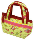 プロバンス柄ミニトートバッグ(商品番号 内側が撥水加工(耐水性のある厚手で光沢のある塩化ビニル防水仕様)になりました。 ハンドバッグまでの大きさはいらないんだけど、必要最小限の小物をまとめて持ち歩きたいという時に便利♪ お子さまのお出かけ用バッグとしてもお使いいただけます。 |