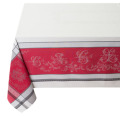 | プロバンスジャガードテーブルクロス(商品番号 バラと植物、アルファベットが織り込まれた美しいテーブルクロスです。模様が繊細で、表裏の糸が絡み合い、独特なニュアンスがあります。まるで手刺繍のような緻密さ。ジャガード織り生地ですが、テフロン加工がされているのでシミ・汚れが気になりません。 |