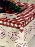 | まずはテーブルクロスについての前知識を。当店取扱いテーブルクロスには、大きく2種類のデザイン配置と素材があります。それらの特徴を表にまとめますと、 | |