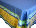 | プロバンステーブルクロス撥水(商品番号 2014年新商品。プロヴァンスプリントブランドメーカー「MARAT D'AVIGNON」のエレガントなテーブルクロス。イエローとブルーの色合わせがとても美しいテーブルクロスです。 一般的な撥水加工テーブルクロスが生地の表面をアクリルコーティングしているのに対し、デュポン社のテフロン加工のものは繊維一本一本が見えない分子のバリアで守られ、汚れ、シミを防ぐ効果を発揮します。防水性ではアクリルコーティングに負けますが、軽くて手触りが限りなくコットンに近いのが特徴で、コーティングされた撥水加工テーブルクロス特有の固い肌触りがありません。通気性、生地の風合いが損なわれずに残っています。 | |||||||