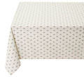 一般的な撥水加工テーブルクロスが生地の表面をアクリルコーティングしているのに対し、デュポン社のテフロン加工は繊維一本一本が見えない分子のバリアで守られ、汚れ、シミを防ぐ効果を発揮します。 軽くて手触りが限りなくコットンに近いのが特徴で、コーティングされた撥水加工テーブルクロス特有の固い感触がありません。通気性、生地の風合いが損なわれずに残っています。 近年は、ジャカード織りのクロスを中心に、テフロン加工が施されています。ビニールっぽい質感がなく、一見ではコットン製との違いが感じられない撥水加工のクロスです。 | ||