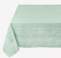 2023年新色。プロヴァンスプリントブランドメーカー「MARAT D'AVIGNON」のエレガントなテーブルクロス。コレクション「アヴィニョン」のジャガード織りバージョンで、テーブル面は全面小花柄 ALL OVER、裾はボーダー柄のプラセデザインです。 一般的な撥水加工テーブルクロスが生地の表面をアクリルコーティングしているのに対し、デュポン社のテフロン加工のものは繊維一本一本が見えない分子のバリアで守られ、汚れ、シミを防ぐ効果を発揮します。防水性ではアクリルコーティングに負けますが、軽くて手触りが限りなくコットンに近いのが特徴で、コーティングされた撥水加工テーブルクロス特有の固い肌触りがありません。通気性、生地の風合いが損なわれずに残っています。 |