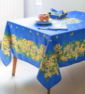 プロヴァンスプリントテーブルクロス撥水加工(ミモザ・ブルー) 全2サイズ【フランス】NAP_25_398e_BL