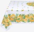 | まずはテーブルクロスについての前知識を。当店取扱いテーブルクロスには、大きく2種類のデザイン配置と素材があります。それらの特徴を表にまとめますと、 | |