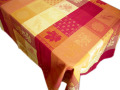 | 正方形テーブルクロスジャガード織りテフロン撥水(商品番号 一般的な撥水加工テーブルクロスが生地の表面をアクリルコーティングしているのに対し、デュポン社のテフロン加工のものは繊維一本一本が見えない分子のバリアで守られ、汚れ、シミを防ぐ効果を発揮します。防水性ではアクリルコーティングに負けますが、軽くて手触りが限りなくコットンに近いのが特徴で、コーティングされた撥水加工テーブルクロス特有の固い肌触りがありません。通気性、生地の風合いが損なわれずに残っています。 | |||||||