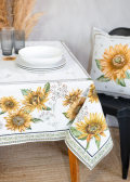 テーブルクロス:マルチカバージャガード織り ひまわり柄( Sunflower サンフラワー・ホワイト 全3サイズ)【フランス】NAP_C92W