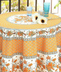 | プロバンス円形テーブルクロス(商品番号 テフロン加工が進化しました。デュポン社がインビスタ社と技術提携。撥水撥油性に優れ、新品同様の風合いをより長期間保ちます。水分油分が生地表面にビーズ状に溜まるので、ふき取りが簡単。汚れ染み防止に大変優れた商品です。 また、太陽光線にも強く抵抗力があるので、ガーデン用のテーブルクロスとしてもお使いいただけます。 効果を長続きさせるためのコツは、洗濯機を頻繁に使用しないこと(普段はふき取り掃除で十分です)。使用の際は洗剤を少なめに、柔軟剤は使用せず、すすぎを十分に行ってください。 優れているのは技術面だけではありません。生地の風合いを損なわず、撥水加工特有の固さがありません。なめらかな肌触り、クロスをかけた時も布の柔らかなラインが綺麗にでます。 | ||||||