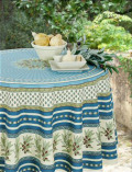 | プロバンス円形テーブルクロス(商品番号 テフロン加工が進化しました。デュポン社がインビスタ社と技術提携。撥水撥油性に優れ、新品同様の風合いをより長期間保ちます。水分油分が生地表面にビーズ状に溜まるので、ふき取りが簡単。汚れ染み防止に大変優れた商品です。 また、太陽光線にも強く抵抗力があるので、ガーデン用のテーブルクロスとしてもお使いいただけます。 効果を長続きさせるためのコツは、洗濯機を頻繁に使用しないこと(普段はふき取り掃除で十分です)。使用の際は洗剤を少なめに、柔軟剤は使用せず、すすぎを十分に行ってください。 優れているのは技術面だけではありません。生地の風合いを損なわず、撥水加工特有の固さがありません。なめらかな肌触り、クロスをかけた時も布の柔らかなラインが綺麗にでます。 | ||||||