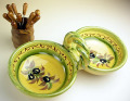 プロヴァンス陶器オリーブプレートB(商品番号 プレートのフチに描かれている細いライン模様が、一点一点微妙に異なります。画像と全く同一とは限らないことをご了承くださいませ。