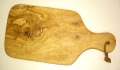 オリーブの木のまな板小、カッティングボード(商品番号 皮ひも付きの小ぶりなまな板です。こちらの商品は、携帯性を最優先して作られたものなので、厚みは0.8cmと薄く軽量です。ピクニックなどの外出先や食卓でのカッティングボードとして最適です。
