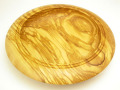 オリーブの木のプレート・クラシック(商品番号 深くくりぬかれたずっしりと安定感のある無垢プレート。プレート内部の側面は、内側へ包み込むような形状でカーブしており、全体的な形状は、ほとんどオリーブウッドのボウルプレート(深皿)