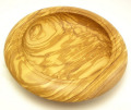 オリーブの木のプレート・クラシック(商品番号 深くくりぬかれたずっしりと安定感のある無垢プレート。プレート内部の側面は、内側へ包み込むような形状でカーブしており、全体的な形状は、ほとんどオリーブウッドのボウルプレート(深皿)