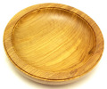 オリーブの木のリム付きプレート(商品番号 深めの無垢リム付プレート。リムの部分は彫刻刀で細長に彫られたような凹凸があり、デザインに奥行きとリズム感が添えられています。歪みが生じようがないほどの厚みでどっしりしており、プレートの裏側細部まで美しく仕上げられています。 |