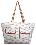 | 外側前に2つついているポケットはマチたっぷり。スナップではなく、マグネット留なので、楽に開閉できます。 | |