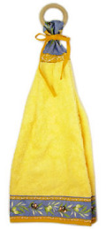 プロバンス木製リングハンドタオル(商品番号 かわいらしい細長タオルが入荷しました。上部と裾にプロヴァンスプリントがあしらってあります。こちらもトイレットペーパーストッカーと同じく、引っ掛け部が木製リングになっています。ストッカーとお揃いで、トイレ用のタオルにするとかわいいですよ♪タオルは紐をほどくと木製リングから簡単に外せるので、 お洗濯に支障ありません |