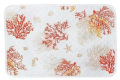 海がテーマのサンゴ礁、タツノオトシゴ、貝殻がプリントされた夏らしいテーブルクロス。
