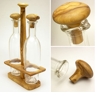 オリーブウッドのテーブルディスペンサー/液体調味料入れ