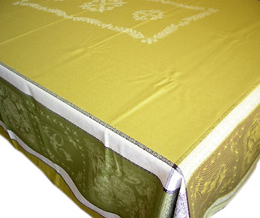 プロヴァンステーブルクロスジャガード織りテフロン撥水加工(モノグラム・グリーン)160×200cmサイズ【フランス】 NAP_20_125e