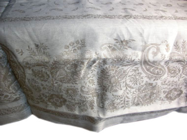 以前の商品に比べ、しなやかで表面の風合いがマットに。滑り止め、緩衝の機能はそのままに、新たに防水、耐熱性(耐熱温度100度!)が加わりました。 お手持ちのテーブルをあらゆるダメージから保護してくれます。ガラステーブルや木製テーブルには特にお奨めです。 ポリ塩化ビニール(PVC)と緩衝のためのスポンジ、滑り止めシートの3層構造。 テーブルとテーブルクロス(トップクロス)の間に敷いて使用します。弾力性があるので、グラスや食器を置いても音がしません。 「滑り止め加工のあるプロヴァンス柄テーブルクロスが欲しい」というご要望をいただくことが多かったのですが、該当する商品を製造しているメーカーがないため、こちらの商品を取り扱うことにしました。 日本で販売されているアンダークロスは薄いシート状のものが多いようですが、こちらのタイプはフランス家庭での普及率も高い定番商品です。 テーブルサイズに合わせてカットできます。 お洗濯は洗濯機の利用可能。 |