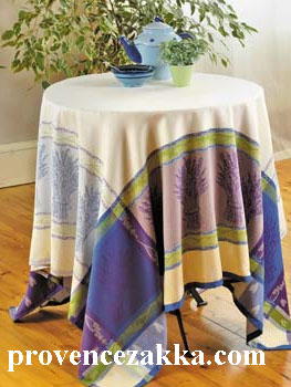 ラベンダーブルーの発色が大変綺麗なテーブルクロスです。
