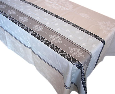 • プロヴァンステーブルクロスジャガード織り撥水加工(モントリュー・ベージュ×ブラックグレー)全2サイズ【フランス】 NAP_25_229e
