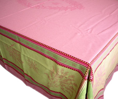 プロヴァンステーブルクロスジャガード織りテフロン撥水加工(ラベンダーセナンク・ローズ~グリーン)160×300cmサイズ【フランス】 NAP_30_01e