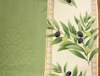 正方形テーブルクロス:トップクロスジャガード織り&プロヴァンス生地フレームクロス160×160cmサイズ(オリーブ・オフホワイト×ミントグリーン)【フランス】NAP_C38::他サイズお取り寄せ可能