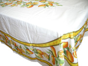 • ラウンド・円形テーブルクロス撥水加工丸テーブル円卓用 直径180cm、直径230cm(レモン&小花柄・ホワイト)【フランス】NAP_R272e