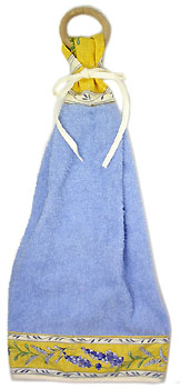 かわいらしい細長タオルが入荷しました。上部と裾にプロヴァンスプリントがあしらってあります。こちらもトイレットペーパーストッカーと同じく、引っ掛け部が木製リングになっています。ストッカーとお揃いで、トイレ用のタオルにするとかわいいですよ♪