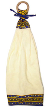 かわいらしい細長タオルが入荷しました。上部と裾にプロヴァンスプリントがあしらってあります。こちらもトイレットペーパーストッカーと同じく、引っ掛け部が木製リングになっています。ストッカーとお揃いで、トイレ用のタオルにするとかわいいですよ♪