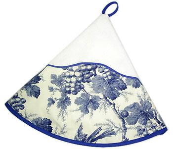 円形タオルの中心に、吊り下げ用のヒモがついています。 日本ではあまりなじみのない形ですが、吊るすとフレアーになってとってもキュート。プロヴァンスプリントがバランスよく配置されており、デザイン性の高いタオルです。