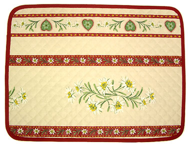プロヴァンスキルティングランチョンマット:ランチマット:プレイスマット:テーブルマット撥水加工(モンターニュ・ホワイト×ボルドー) ノルディック柄 SET_T53【フランス】